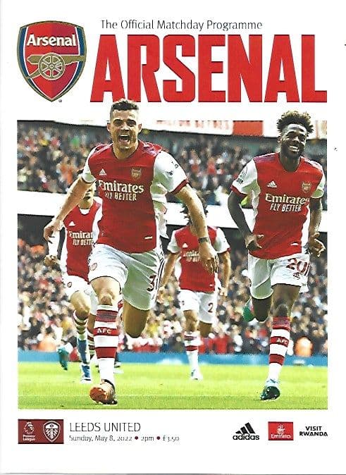 Arsenal V Leeds United 8th May 2022 Official Matchday Programme